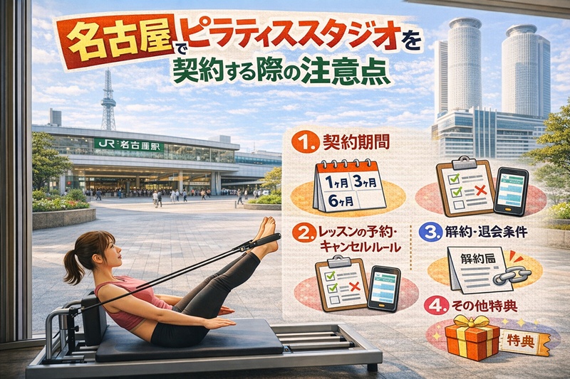 また、近年増えている「ピラティスの契約トラブル相談先」についてもご案内。名古屋市内でピラティスをお得に、そして安心して始めたい方に役立つ情報をまとめました。